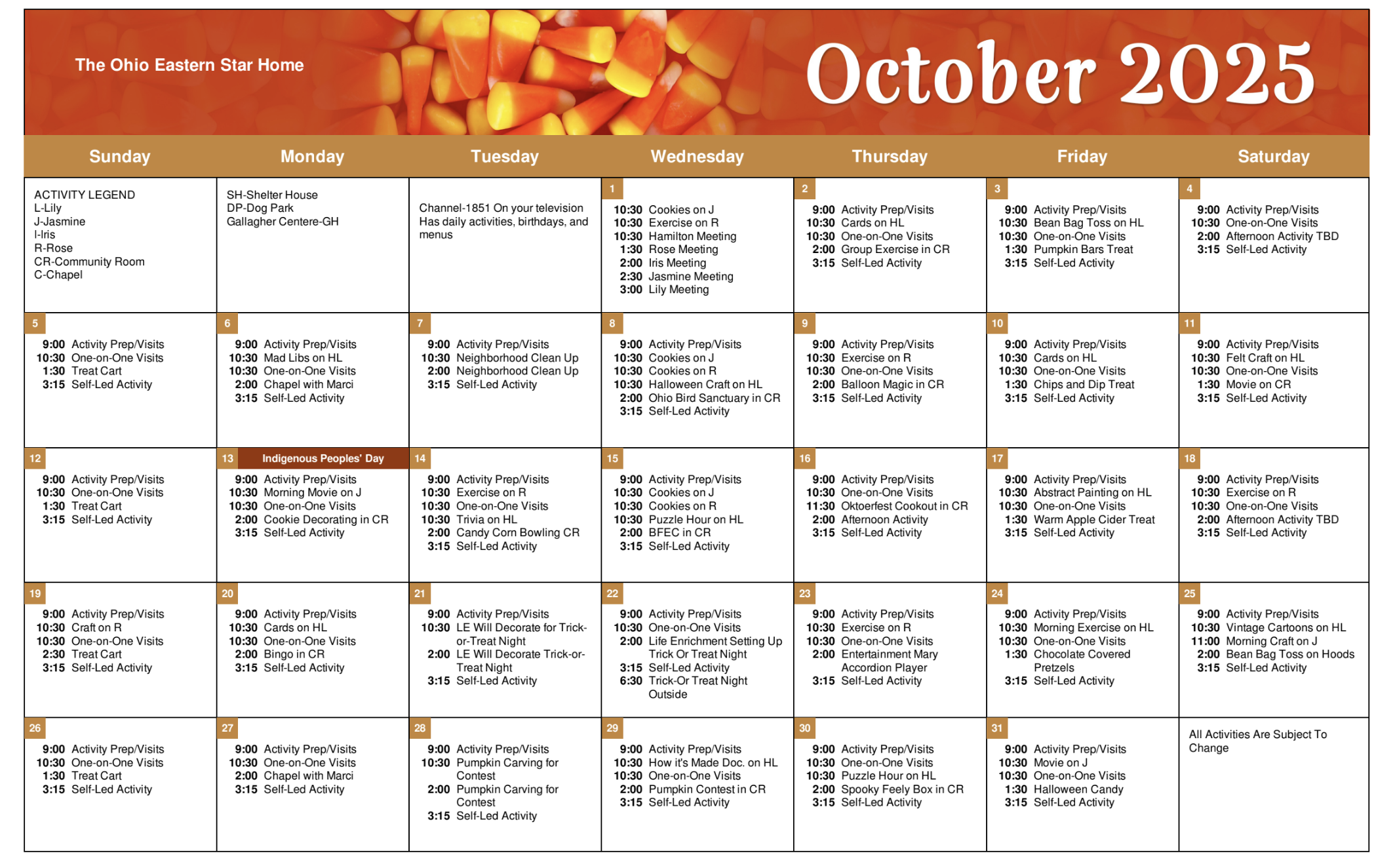 It is our goal at The Ohio Eastern Star Home to have our activities be resident-driven, person-centric, and meet the needs and diverse abilities of our Elders. Our Life Enrichment team works hard to keep our Elders active and engaged and living their best life.